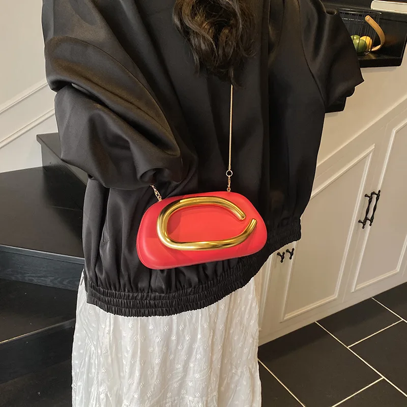 New Clutch Bag Metal Handle Design Evening Bag Round Box Chain Bag Elegant Woman Shoulder Bags PU Crossbody Bag